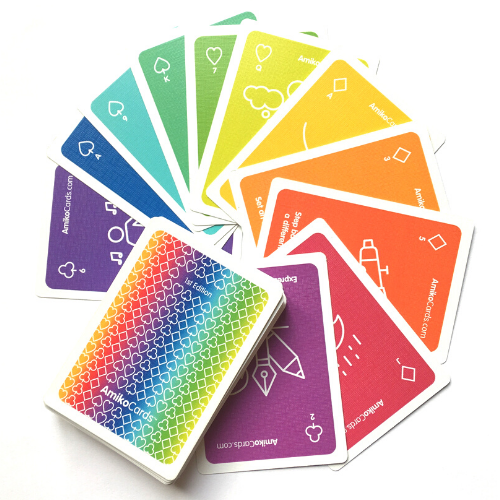 'Amiko' is the Esperanto word for 'friend'. Have you ever noticed that it's easier to think of helpful things to say to a friend who's having a bad day than it is to say them to yourself when you're the one who's feeling out-of-sorts? Amiko Cards are a simple way of reminding yourself of the helpful things you know, but can't necessarily access when you need them most.